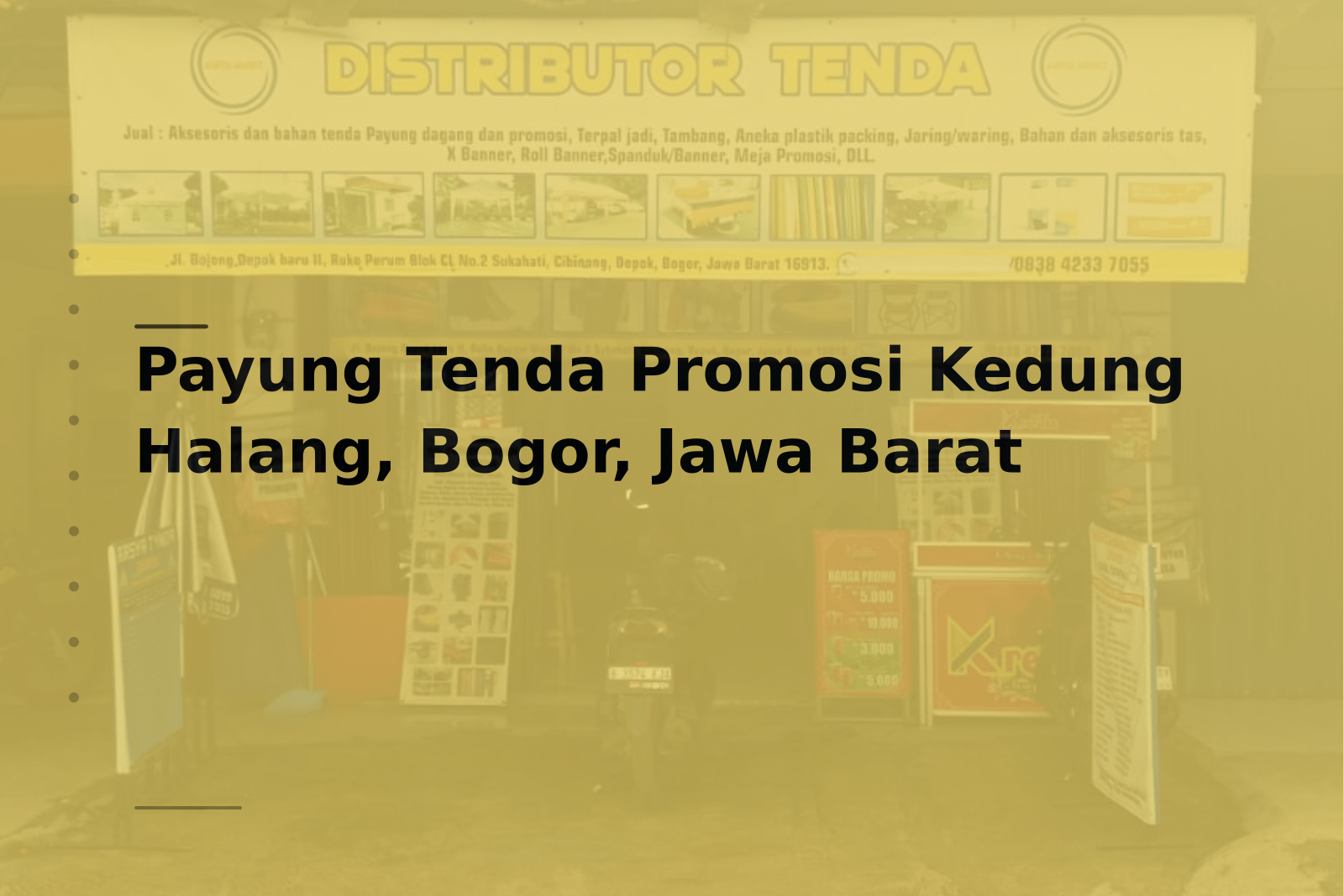 Solusi payung tenda promosi profesional di Kedung Halang, Bogor. Custom design, bahan premium, pemasangan cepat. Hubungi Admin via WhatsApp untuk konsultasi.