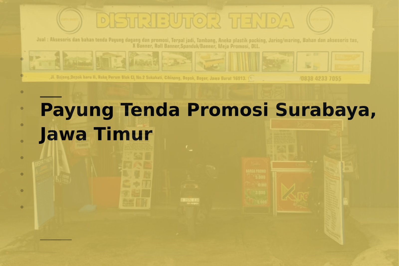 Solusi payung tenda promosi di Surabaya oleh Arsya Tynda: produksi custom, bahan premium, desain logo, pemasangan profesional. Hubungi via WhatsApp untuk konsultasi.